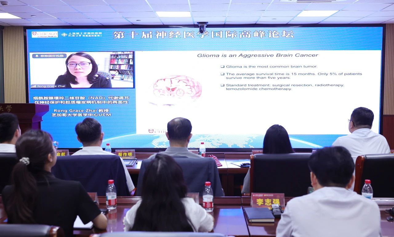 Rong Grace Zhai教授作“煙酰胺腺嘌呤二核苷酸(NAD)代謝調節在神經保護和膠質瘤發病機制中的兩面性”學術報告。她重點圍繞NAD與腫瘤發生的相關性、NAD代謝對腫瘤細胞的影響等方面進行了精彩講解,其研究團隊正在開發針對NMNAT1抑制劑以降低其在膠質瘤中的表達,同時提高NMNAT2在神經元中的表達,以抑制膠質瘤的發生并增強神經保護功能,為膠質瘤治療帶來新希望。