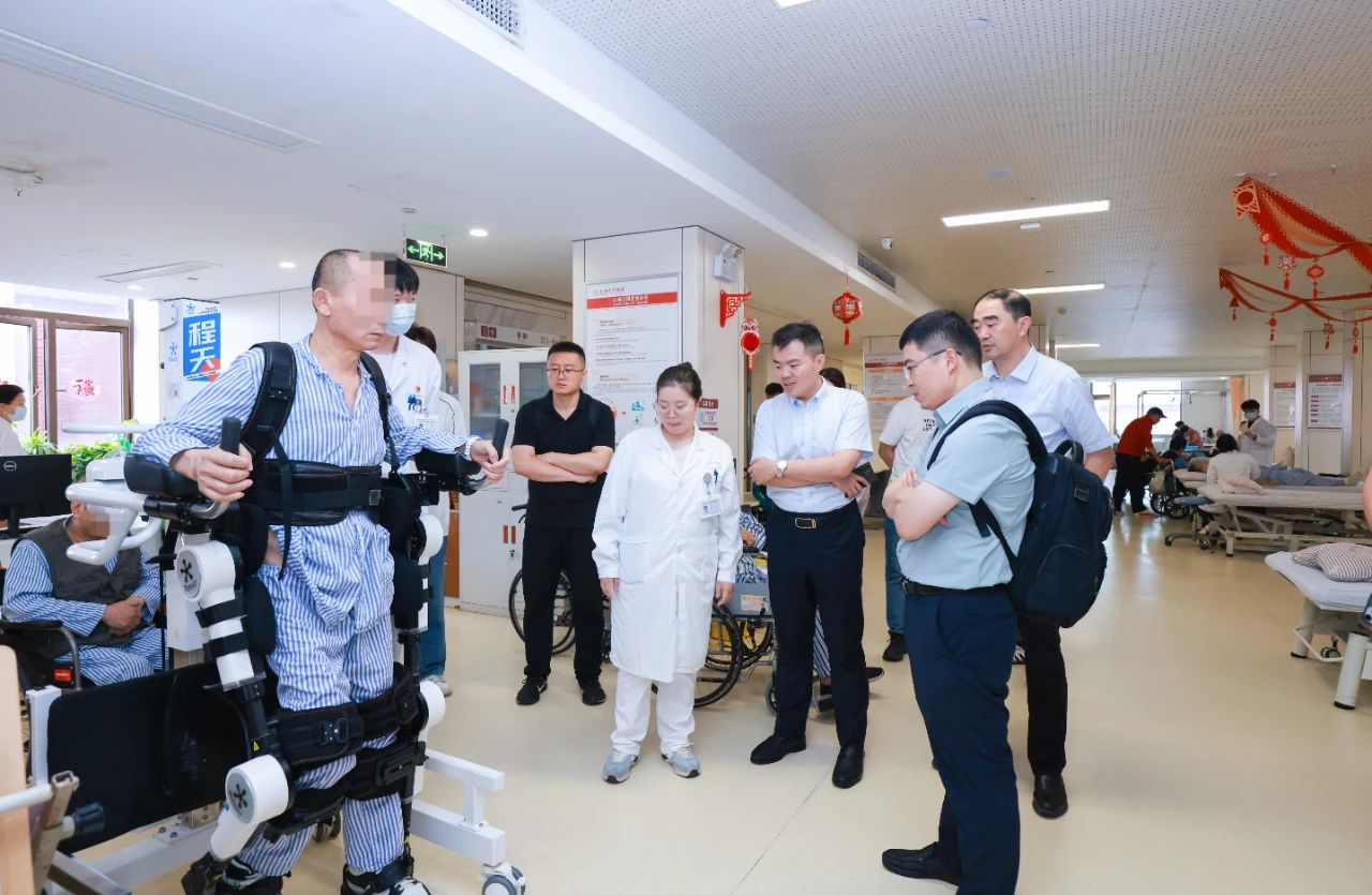 在康復大廳參觀時,一位穿戴著外骨骼機器人正在練習行走的患者,讓大家見識到了科技的魅力。“外骨骼機器人技術是融合了傳感、控制、信息、移動計算,為作為操作者的人提供一種可穿戴的機械機構的綜合技術,可以有效幫助下肢運動障礙患者恢復行走功能。”信息科負責人說。不僅如此,康復醫學科還通過康復大屏、康復管理系統,實現了康復治療全過程的信息化、數字化和智能化管理。