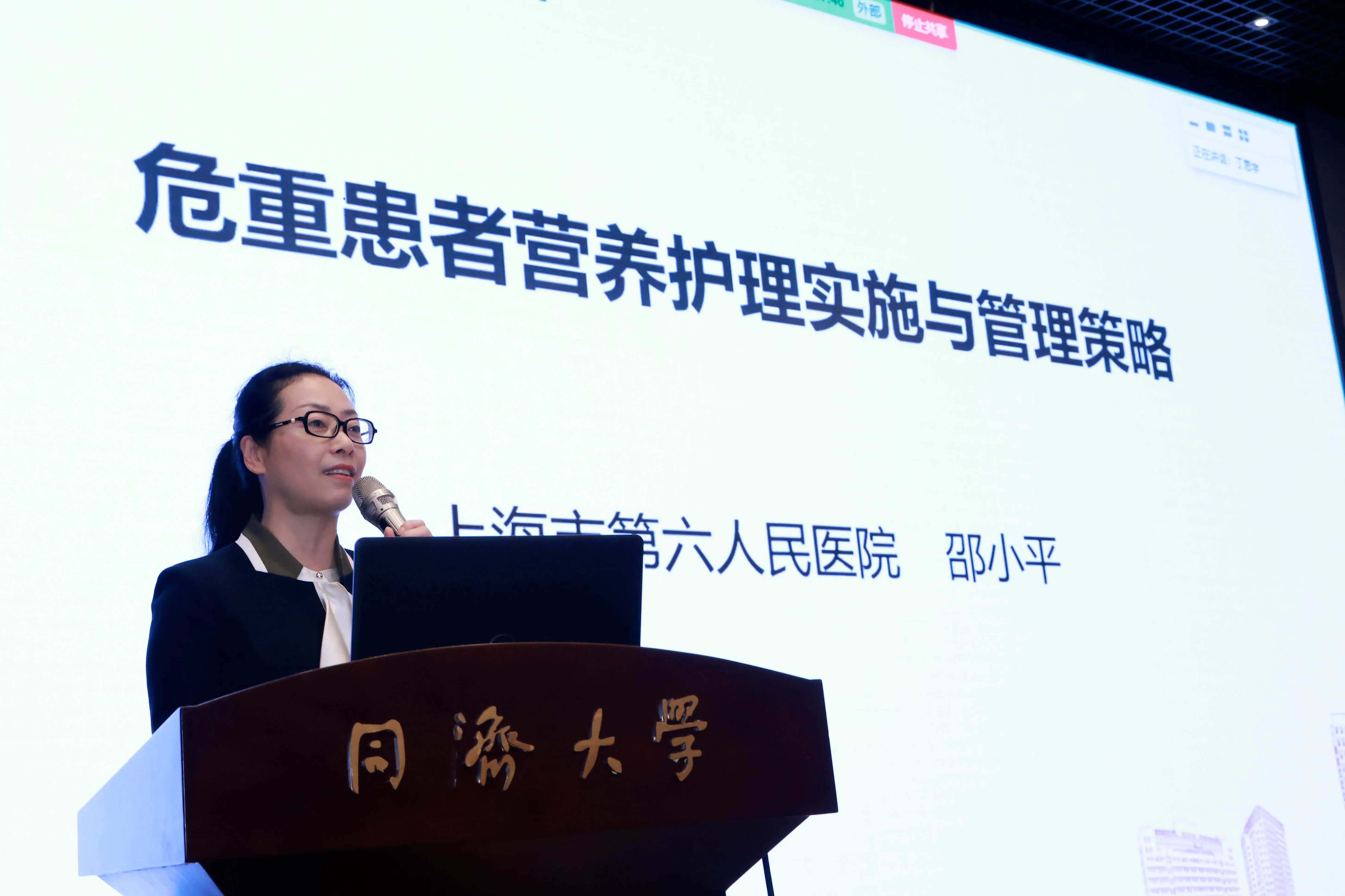 邵小平教授以《危重患者營養護理實施與管理策略》為題進行授課分享。她介紹,營養護理是護理人員根據對患者的營養評估、患者的疾病及其對營養的需要,與醫生和營養師進行共同協商,確定患者的營養狀況,并制定營養計劃的護理方法。當前,臨床營養支持作為現代危重癥治療的一種重要手段,營養護理成為護理領域研究的熱點課題。邵小平系統闡述了營養護理的相關定義內涵,通過引用最新的指南共識和國內外大量文獻,以及通過病例的導入來提出重癥患者腸內營養實施的重要性,詳細介紹了營養風險評估的4W(時機、途徑、制劑及量、耐受性評估),危重患者誤吸高風險因素等,分享了臨床上實用的護理技巧。