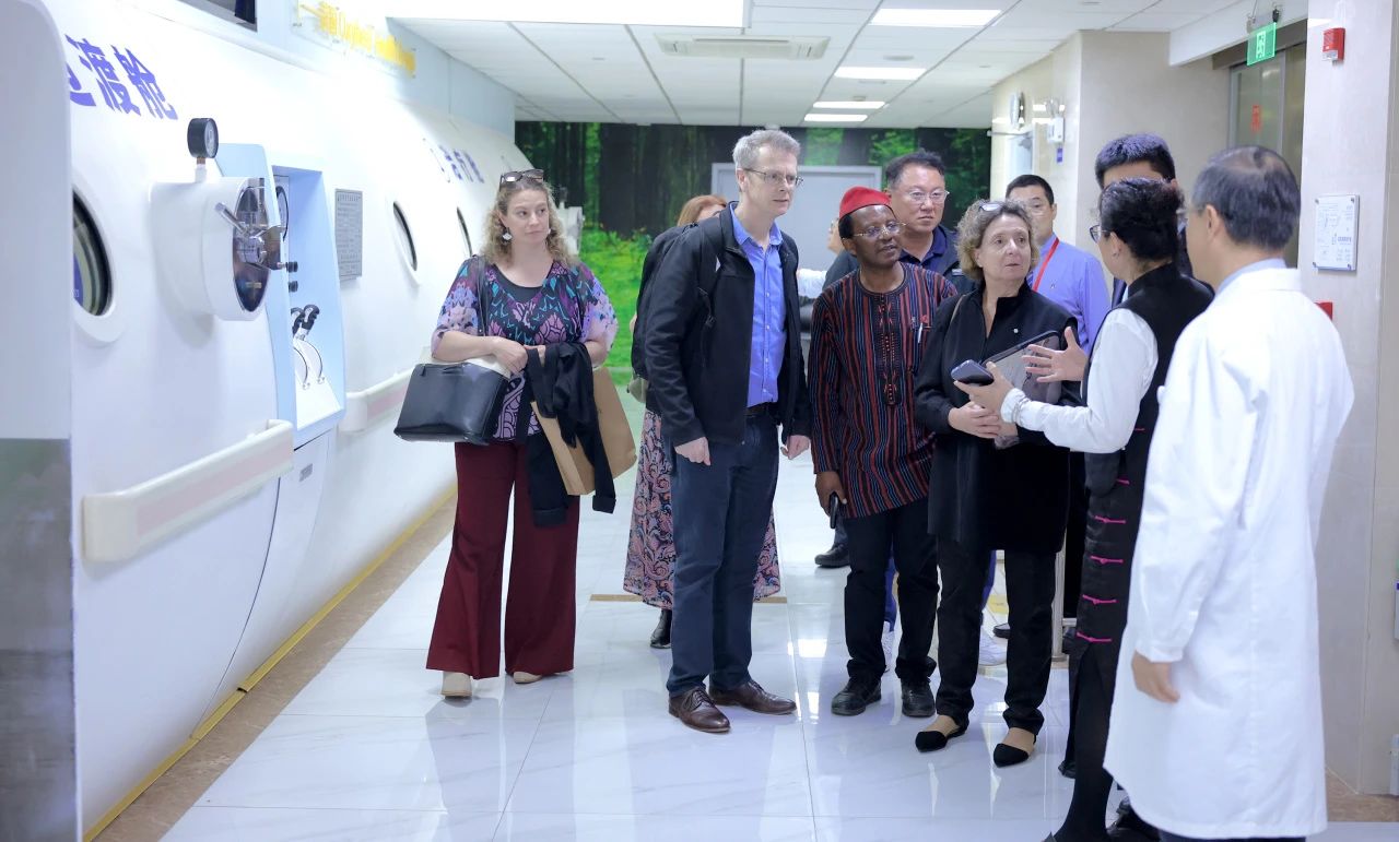 參觀過程中,專家代表對醫院業務開展、學科建設、特色醫療技術、設施設備等表現出濃厚的興趣,并進行了現場交流。值得一提的是,在高壓氧科,規模宏大的氧艙群讓專家代表們眼前一亮,大家駐足良久,紛紛拿出手機拍照留念。