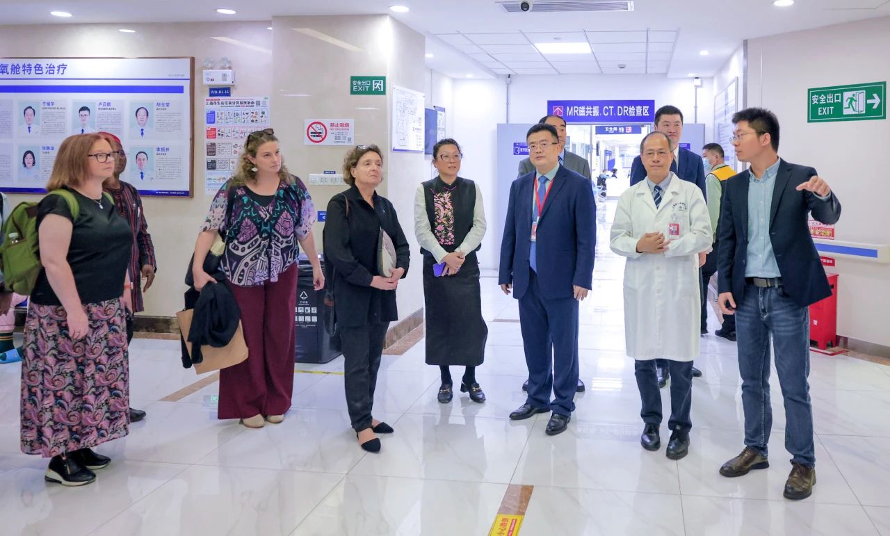 專家代表一行抵達醫院后,實地參觀了醫院9F重癥醫學科、8B神經內七科、7A神經內三科、高壓氧科、影像科、放療科等重點特色科室。