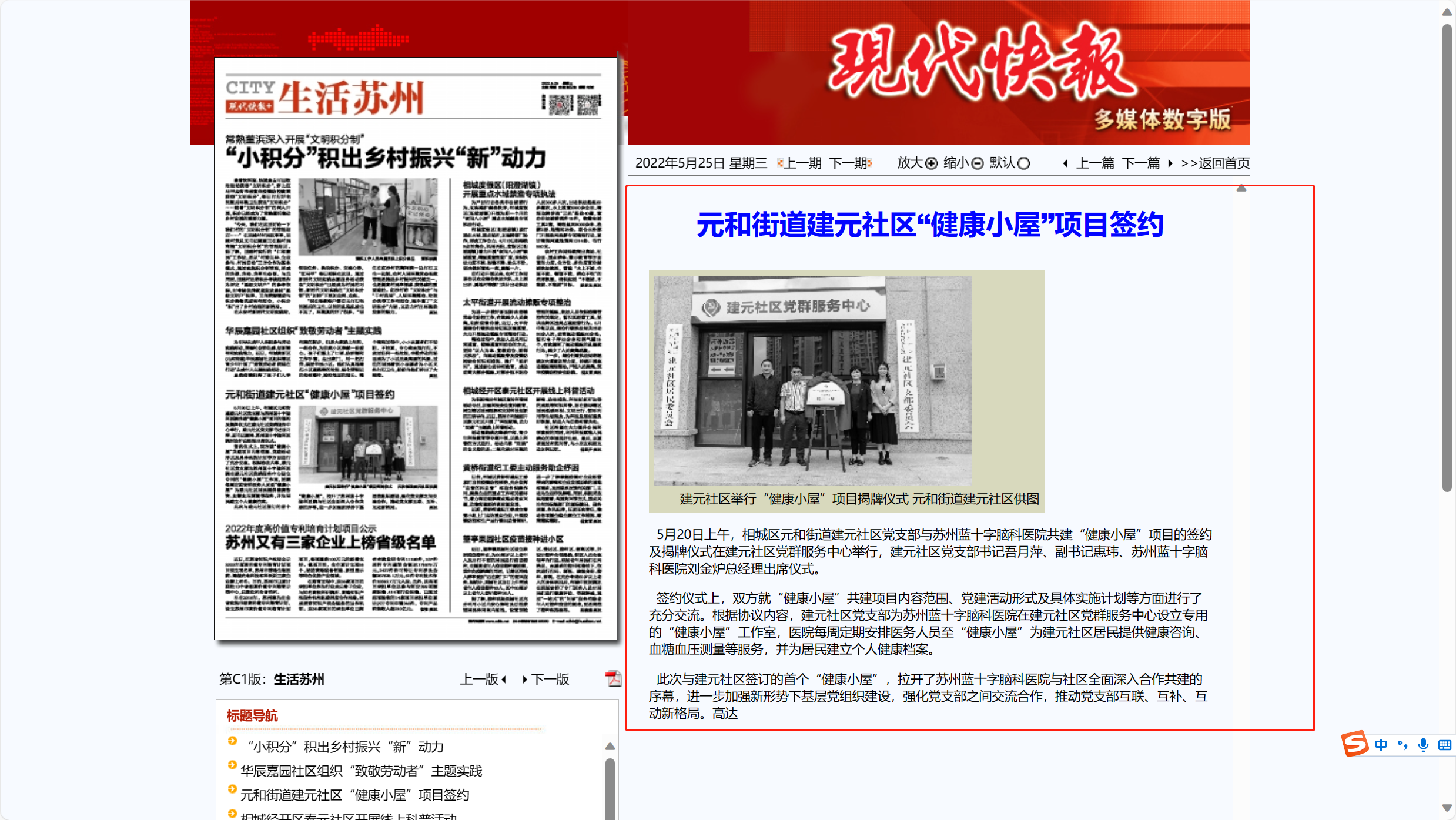 此次與建元社區簽訂的首個“健康小屋”,拉開了蘇州藍十字腦科醫院與社區全面深入合作共建的序幕,進一步加強新形勢下基層黨組織建設,強化黨支部之間交流合作,推動黨支部互聯、互補、互動新格局。