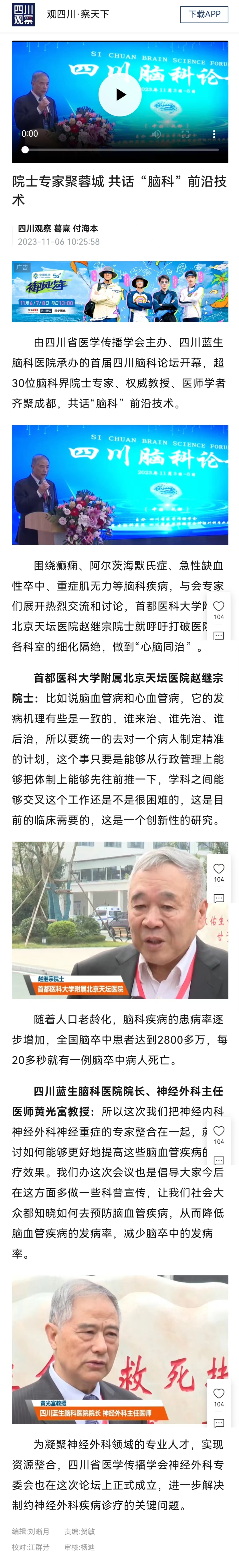 由四川省醫學傳播學會主辦、四川藍生腦科醫院承辦的首屆四川腦科論壇開幕,超30位腦科界院士專家、權威教授、醫師學者齊聚成都,共話“腦科”前沿技術。