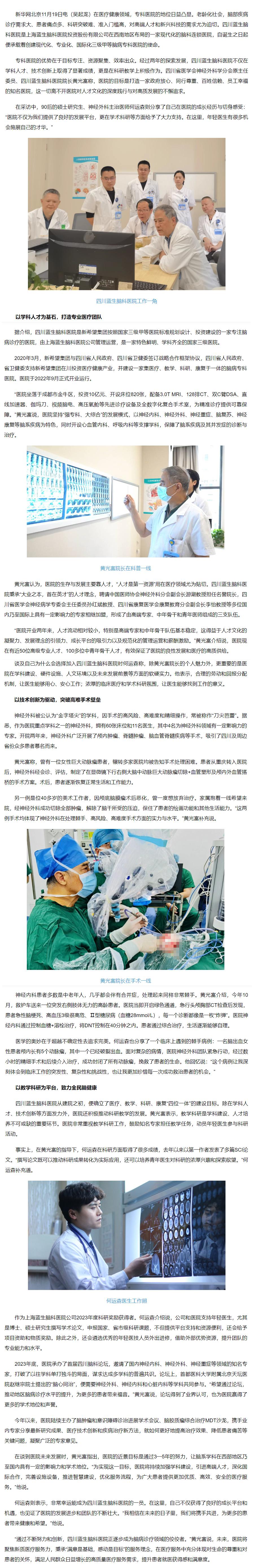 在醫療健康領域,專科醫院的地位日益凸顯。老齡化社會,腦部疾病診療需求大、患者痛點多、科研突破難、準入門檻高,對高端人才和新興科技的需求尤為迫切。四川藍生腦科醫院是上海藍生腦科醫院投資股份有限公司在西南地區布局的一家現代化的腦科連鎖醫院,自誕生之日起便承載著創建現代化、專業化、國際化三級甲等腦病??漆t院的使命。