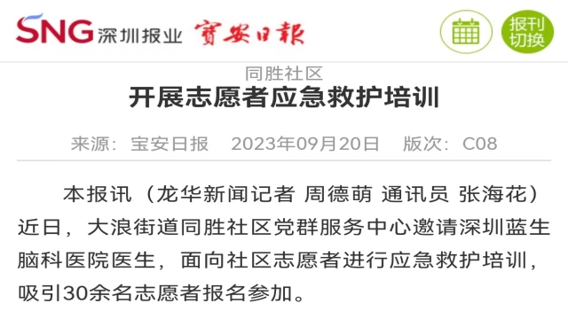 寶安日報:深圳藍生腦科醫院走進社區開展志愿者應急救護培訓