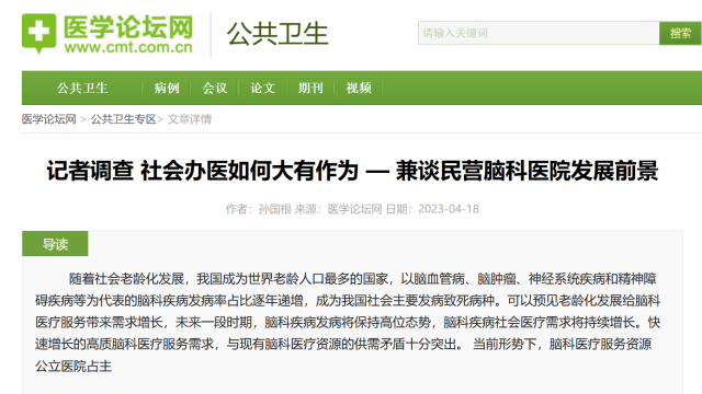 記者調查 社會辦醫如何大有作為 — 兼談民營腦科醫院發展前景