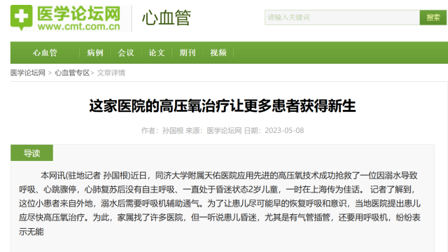 醫學論壇網:這家醫院的高壓氧治療讓更多患者獲得新生
