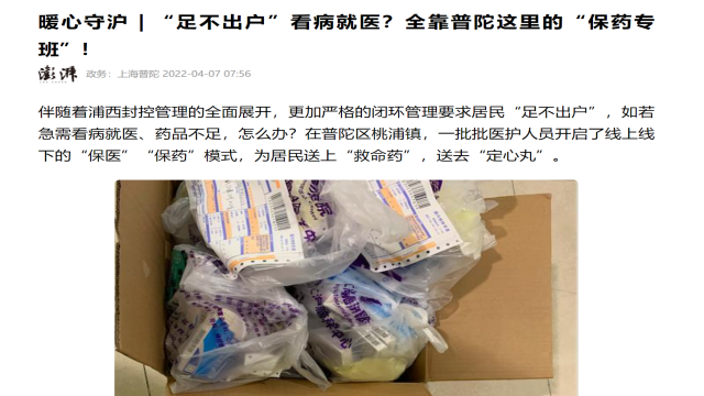 澎湃新聞:“足不出戶”看病就醫?全靠普陀這里的“保藥專班”!
