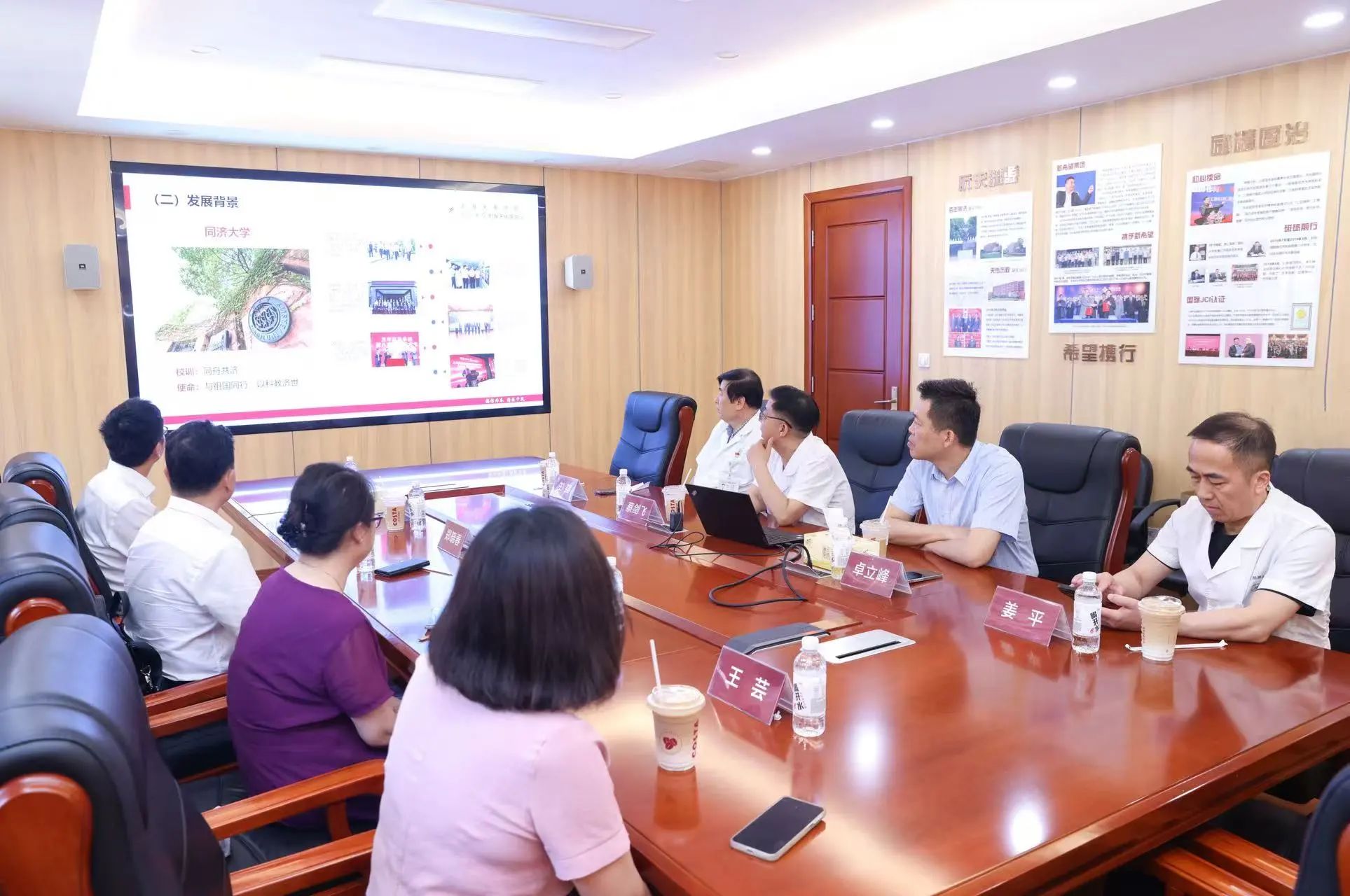 7月15日下午,福州大學醫學院黨委副書記陳偉斌、附屬省立醫院副院長鄭曉春一行在同濟大學滬西校區管委辦主任畢婉蓉、同濟大學醫學院院辦主任蔡文萍、同濟大學滬西校區管委辦副主任王蕓的陪同下,到上海天佑醫院參觀交流,天佑醫院院長蔡劍飛、總經理卓立峰等院領導接待并座談。