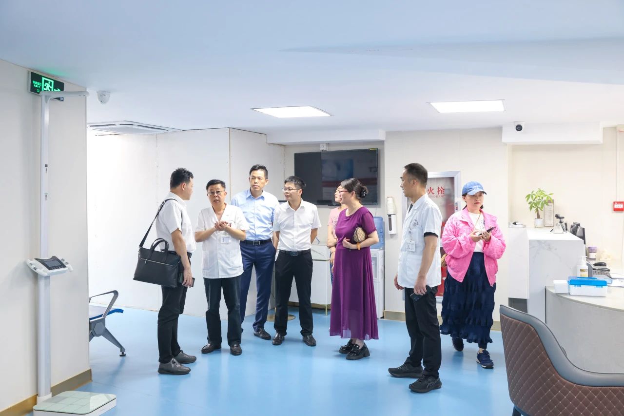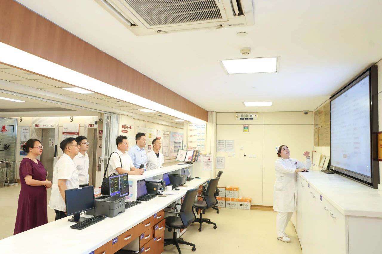 領導們一行先后到放療科、高壓氧艙、NICU、康復大廳及多個病區參觀考察。每到一處,蔡劍飛院長都進行詳細介紹,讓大家實地了解醫院的功能布局、設備設施、智慧醫院建設等情況。