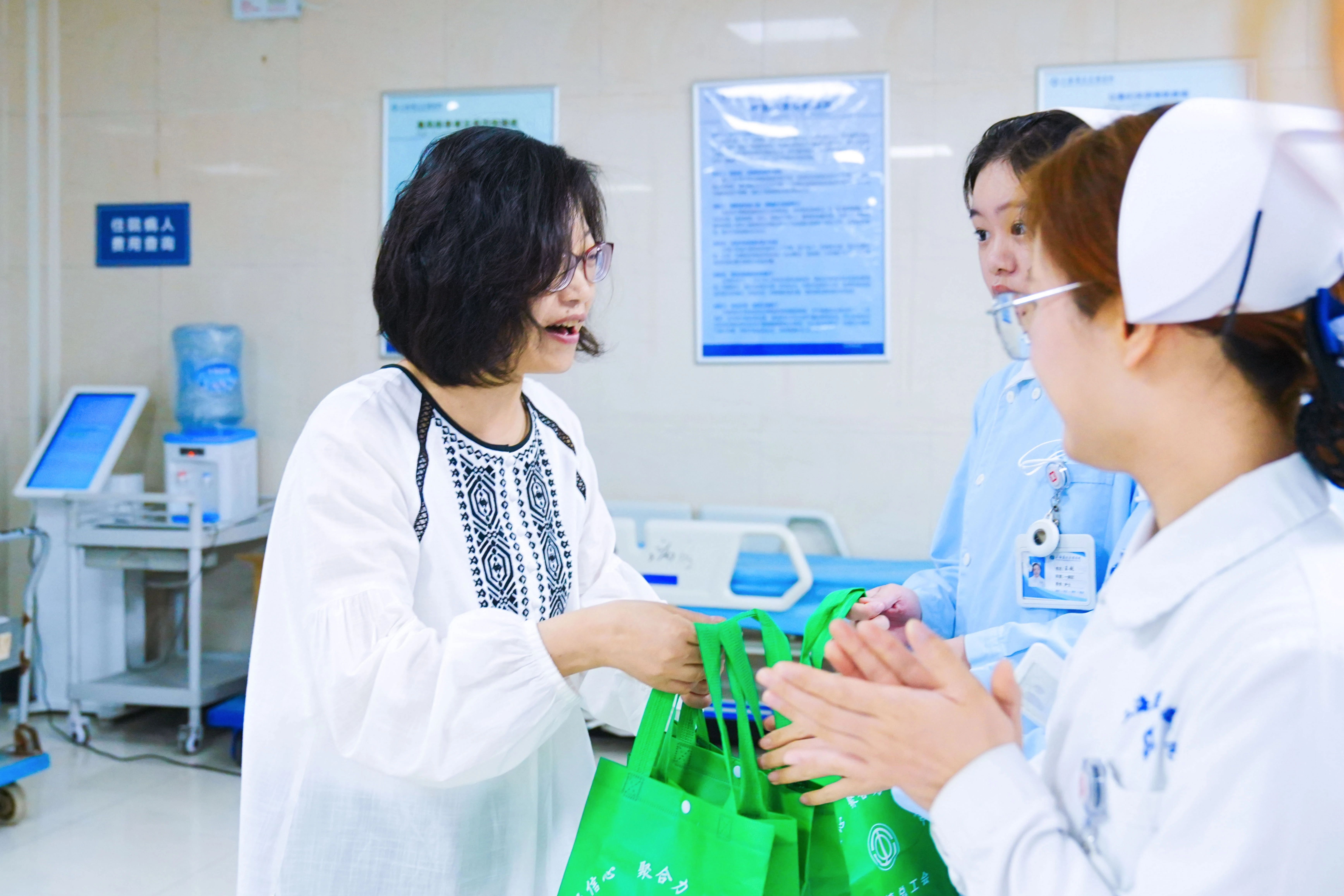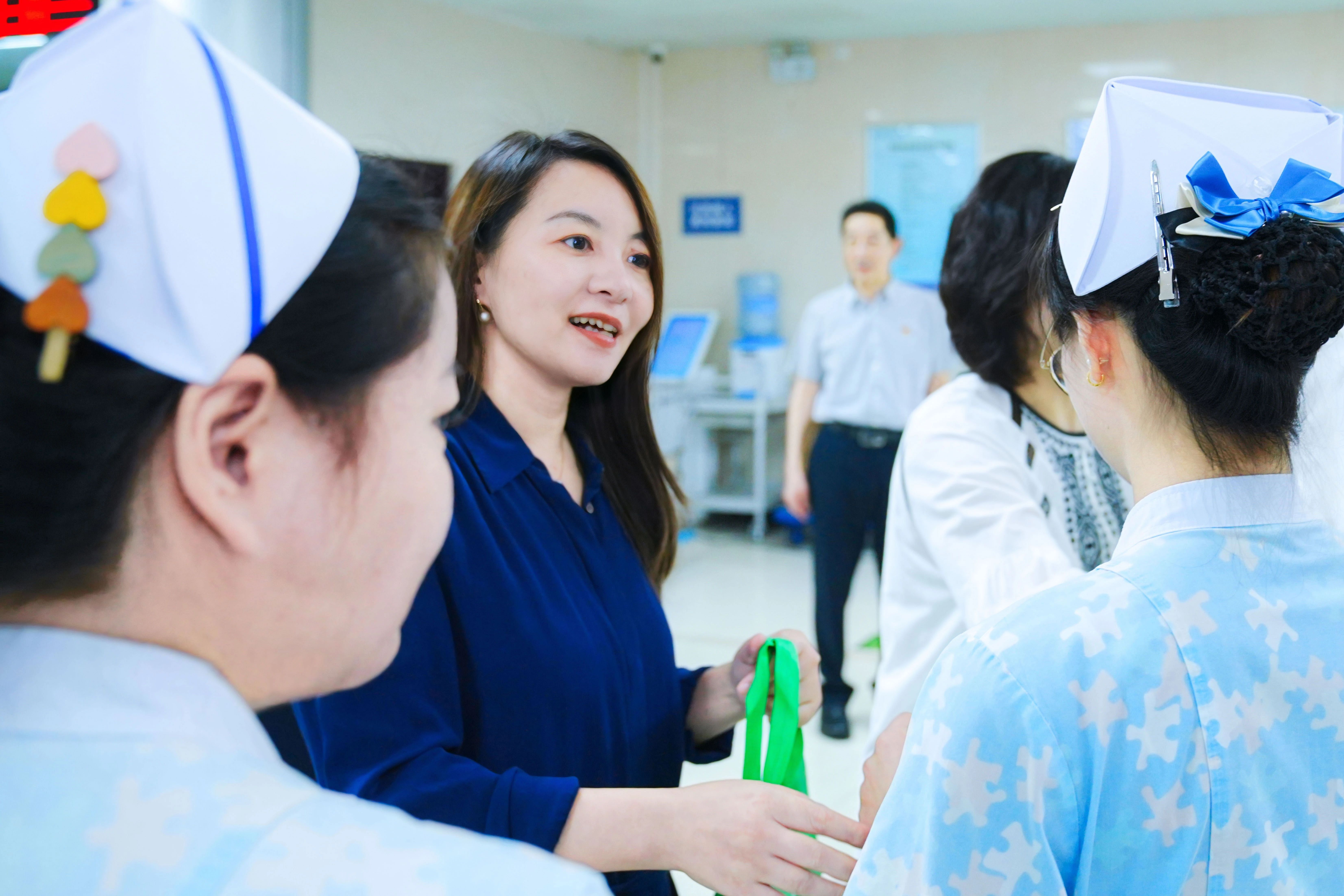 在醫院領導班子陪同下,吳音英書記和吳云燕委員來到醫院門診大樓,與醫護人員親切交談,詳細了解近期診療情況、防暑保障措施及職工工作狀態。同時為醫務人員送上清涼防暑禮包。領導們叮囑大家在做好醫療服務的同時,注意勞逸結合,確保自身健康。