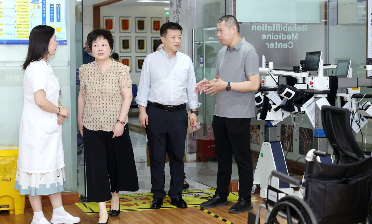 7月23日,閔行區衛健工作黨委副書記張浩、閔行區醫務工會主席陳焰一行蒞臨上海藍十字腦科醫院慰問,醫院黨支部書記兼總經理朱敏、院長項耀鈞、工會主席吳春芳、工會副主席羅佳等陪同。