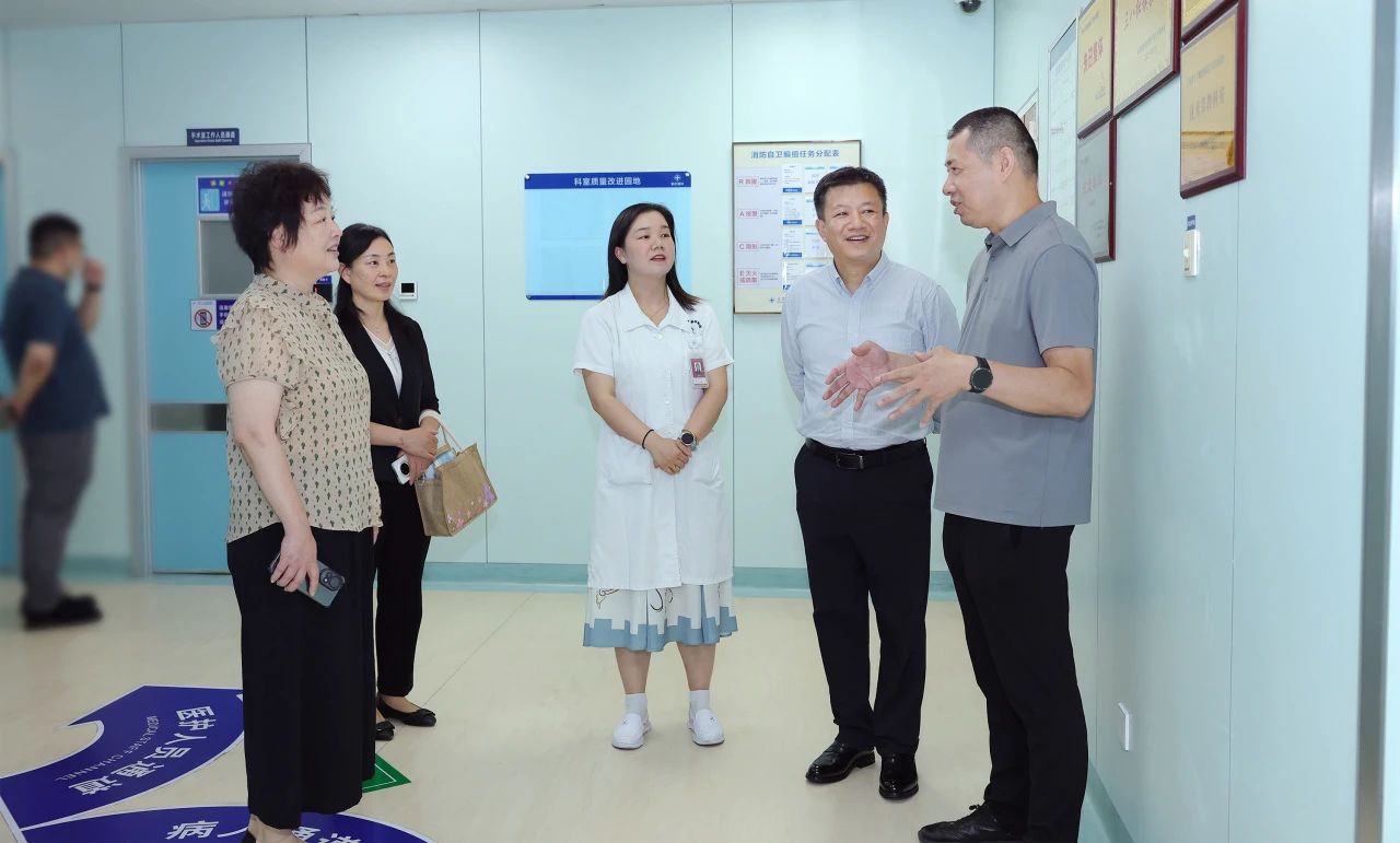 7月24日上午,吳涇鎮黨委副書記吳音英和黨委委員吳云燕一行蒞臨上海藍生宏德醫院慰問,醫院黨支部書記兼院長周宏宇、總經理林志強、工會主席陳新民、副院長程平等陪同。