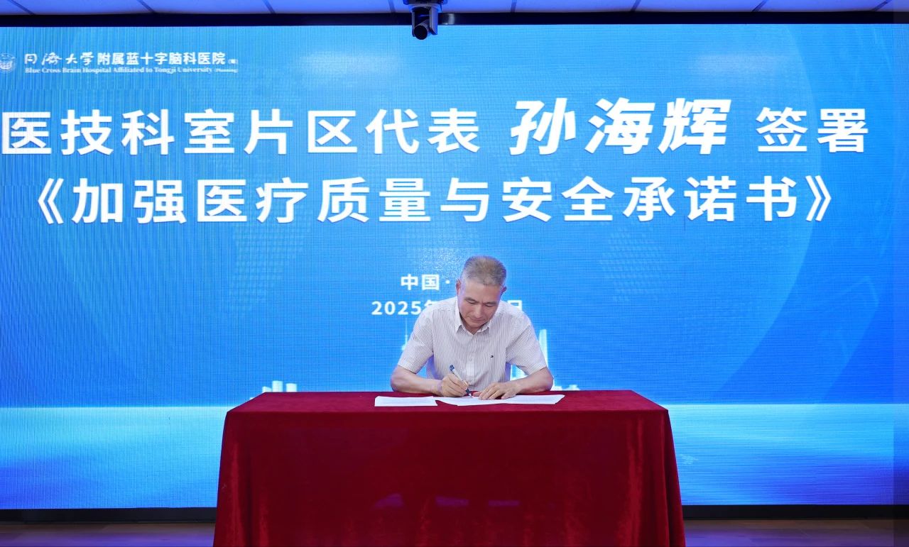 隨后,張靜波主任、李志強主任、孫海輝主任、李楠楠護士長分別代表內科片區、外科片區、醫技科室片區、護理片區,上臺簽署《加強醫療質量與安全承諾書》。