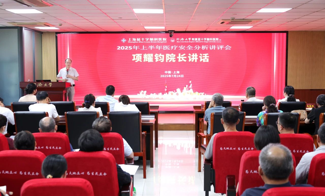 為進一步強化醫療質量與安全管理工作,持續提升醫療服務水平,7月24日下午,上海藍十字腦科醫院召開2025年上半年醫療安全分析講評會。院長項耀鈞,副院長潘耀良、周克祥等院領導,各臨床、醫技、職能科室負責人,醫護骨干共計百余人參加會議。講評會由醫務科朱細??崎L主持。
