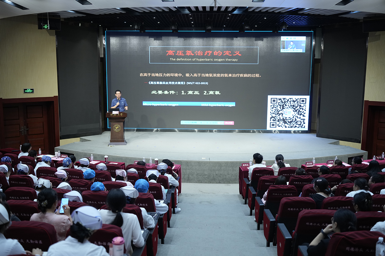 開班式后,中華醫學會高壓氧醫學分會副主任委員、上海天佑醫院高壓氧腦復蘇中心主任劉青樂教授帶來了《高壓氧技術在危重癥患者治療中的應用進展》專題講座,系統講解了高壓氧治療的定義、高壓氧對機體的作用、高壓氧治療的安全性及相對禁忌癥等,強調通過技術創新可以突破高壓氧治療的“禁忌”,幫助危重癥患者在高壓氧艙內轉危為安。