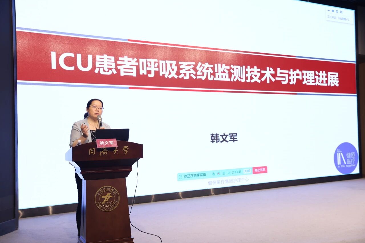 8月30日,韓文軍博士作了《機械通氣應用與護理》《ICU患者呼吸系統監測技術與護理進展》兩個專題分享。韓文軍博士提出,在危重癥患者的護理中,呼吸系統監測和機械通氣的應用至關重要。她詳細講解了呼吸機的多種模式與參數選擇,強調護理人員精準操作呼吸機、需要掌握呼吸機的使用流程、及時評估機械通氣對機體的影響、熟悉以及可能出現的并發癥及其防治措施,其講座為護理人員提供了全面而系統的知識體系。