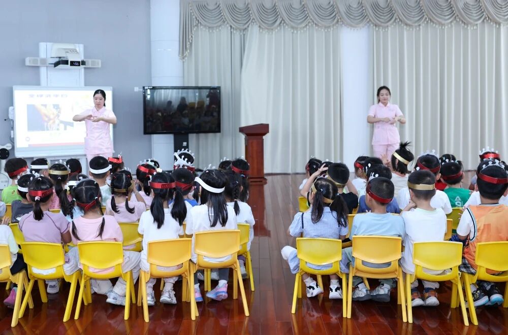 “那你們知道怎樣洗手才算合格?”張玲主任又問道。她隨即講解了“七步洗手法”要領,護士們配合著進行標準、細致地演示。孩子們紛紛伸出雙手,從掌心到指縫,從指尖到手腕,認真練習每一步洗手動作。