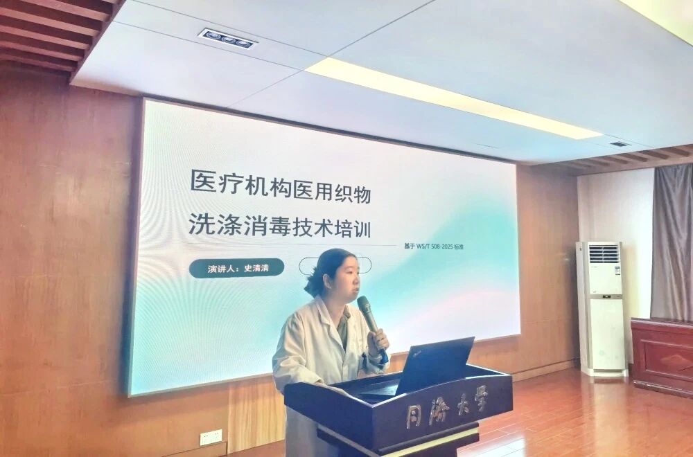 10月17日,感控辦史清清作醫療機構醫用織物洗滌消毒技術培訓(WS/T 508-2025 標準)。護工們系統學習了織物收集、運送與洗滌消毒的全流程規范操作。同時,她還傳播正確洗手知識,提升護工們的感控意識。