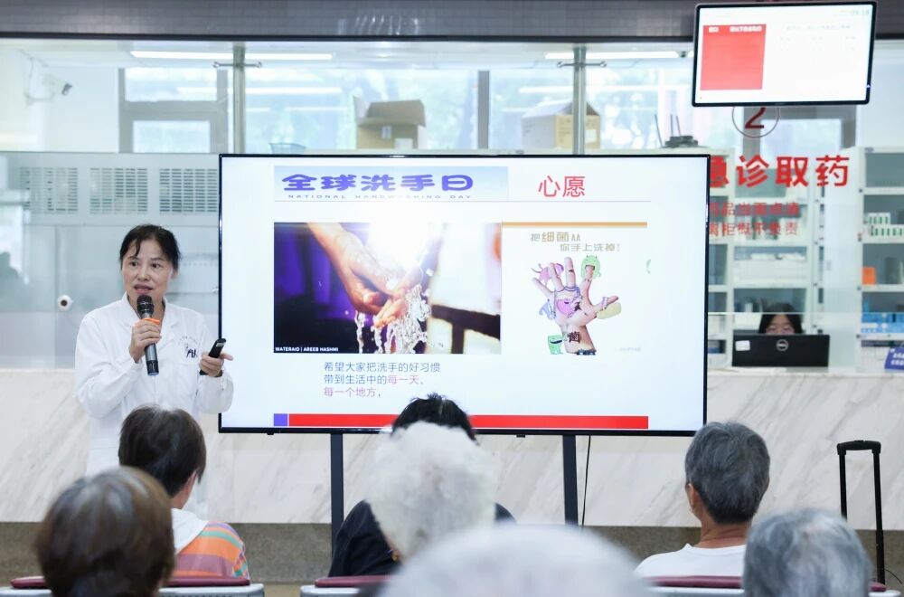 10月10日,感控辦在門診大廳舉辦了“全球洗手日”科普宣教活動。張玲主任圍繞“全球洗手日——走進健康大講堂 做個洗手英雄”這一主題,通過生動演示和趣味問答,向社區居民普及手衛生知識,并現場指導了“七步洗手法”?,F場居民紛紛表示收獲頗豐,一位居民感慨道:“原來洗手里頭有這么多學問,我以后一定要按照步驟規范洗手。”