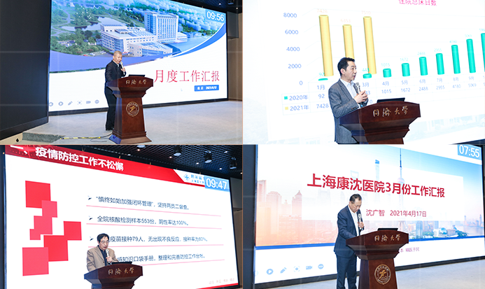 公司副總裁兼同濟大學附屬天佑醫院院長蔡劍飛、公司副總裁兼同濟大學附屬腦科醫院院長項耀鈞、上海藍生萬眾醫院院長韓建新、公司副總裁兼蘇州藍十字腦科醫院院長戴震、上海藍生宏德醫院院長周宏宇、慈溪藍十字腦科醫院院長杭鶴云、上??瞪蜥t院院長沈廣智分別就3月份大項任務、業務運營、工程建設和常態化疫情防控工作作匯報,并對4月份重點任務和目標清單作簡要報告。