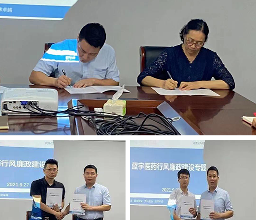 會議最后,藍宇醫藥公司領導班子與黃曉梅副總裁、藍宇醫藥公司其他員工與詹忠日總經理,簽訂行風廉政建設責任書,營造以上率下、上行下效,層層立標桿、人人作示范的良好氛圍。