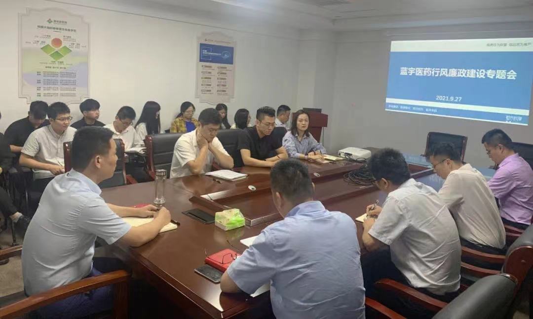 為貫徹公司《關于開展行風廉政教育系列活動的通知》,強化廉潔從業、拒腐防變意識,9月27日下午,公司旗下藍宇醫藥公司召開行風廉政建設專題會議,總結經驗做法,部署下步重點任務。公司副總裁黃曉梅,藍宇醫藥公司總經理詹忠日、副總經理田晗梟出席。藍宇醫藥公司副總經理俞俊寶主持。