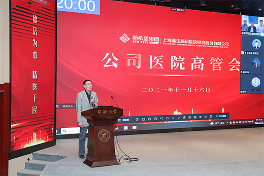 劉暢董事長發表重要講話,提出三點意見建議。她表示,通過參加此次高管例會,了解到了藍生的核心業務、發展方向和主要做法,體會到了藍生充滿激情、交流研討、總結反思的企業文化,感受到了醫院之間互相欣賞、互相學習、互相比拼的濃厚氛圍。她指出,要上下同欲,從全局層面把握重點、突出核心、兼顧全面,建立“集團軍”和“戰斗隊”互動的工作模式;要步調一致,從公司層面分解任務、共享資源、匹配時間,處理好長期戰略、核心戰役和短期戰斗的關系;要加快轉型,從頂層設計好數據交互、數據分析、數據導出等諸環節,讓數據能夠說話,讓數據為公司發展服務。她強調,醫療作為新希望集團的新“戰場”,必須堅持良好態度、必勝信心、長期主義,胸懷愛心、責任心、敬畏心,學習長庚醫院把精益化管理與專業化診療相結合的先進經驗,為患者提供最優質的體驗和最安心的服務,把民營醫院的品質打造好,把謀民生、解民憂的社會責任落實好。