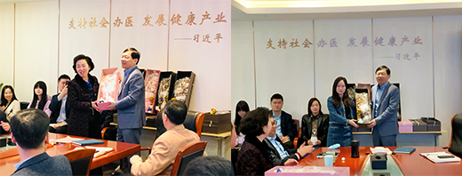 上??瞪蜥t院院長沈廣智、總經理卓海輝為女性員工送上鮮花和誠摯問候。