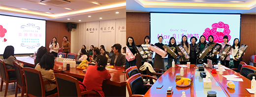 8日,公司及旗下醫院組織豐富多彩的慶?;顒?。公司總部在大會議室組織女性員工座談,開展破冰游戲,送上精美禮物。葉文琴副總裁代表卓立強董事長向全體女同胞送上節日祝福。