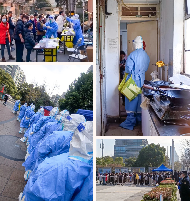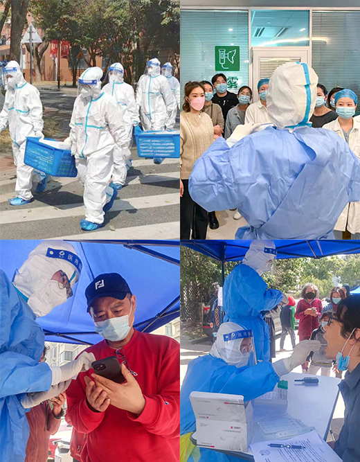 “大家除了為集中前來的居民采樣,還要為特殊的人群上門采樣。“在普中心醫院采樣點的劉宛宛說,“有些孕婦和老年人不便下樓,隊員們就爬樓梯到家中進行采樣,穿著防護服爬上6樓,稍跑得快一點,人都要窒息了,但是當大家的工作得到居民的贊許,感覺累一點也值了。”