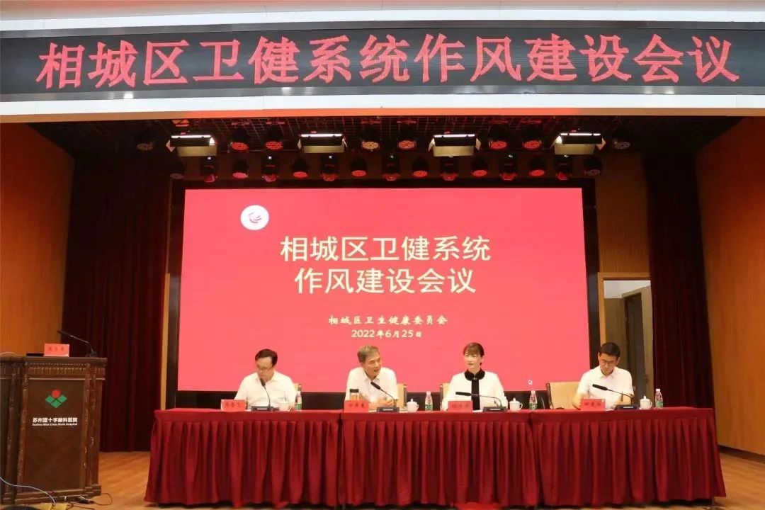 6月25日,蘇州市相城區衛健委于蘇州藍十字腦科醫院召開衛健系統作風建設會議,推動全系統進一步轉變工作作風,提高工作效率,提升服務效能。區紀委副書記、監委副主任萬年春,區衛健委黨委書記、主任孫偉為等出席會議。