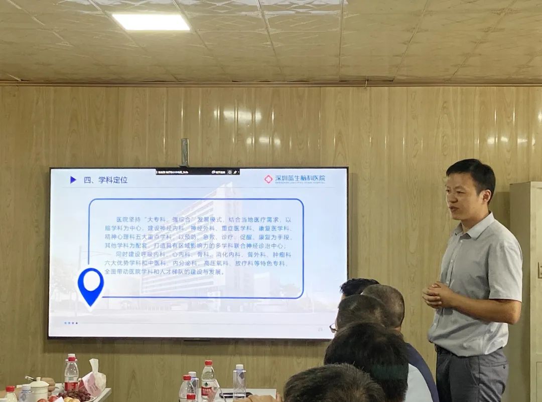 劉軼永總經理指出,醫院領導班子和全體員工工作熱情飽滿、工作態度積極、工作狀態昂揚,工程推進快速,完成任務出色,治理體系完善,體現了深圳效率和藍生品質。他表示,醫院作為深圳市首家腦疾病??漆t院,必將會在珠三角地區發揮巨大醫療優勢。公司對醫院未來發展充滿信心和期待。