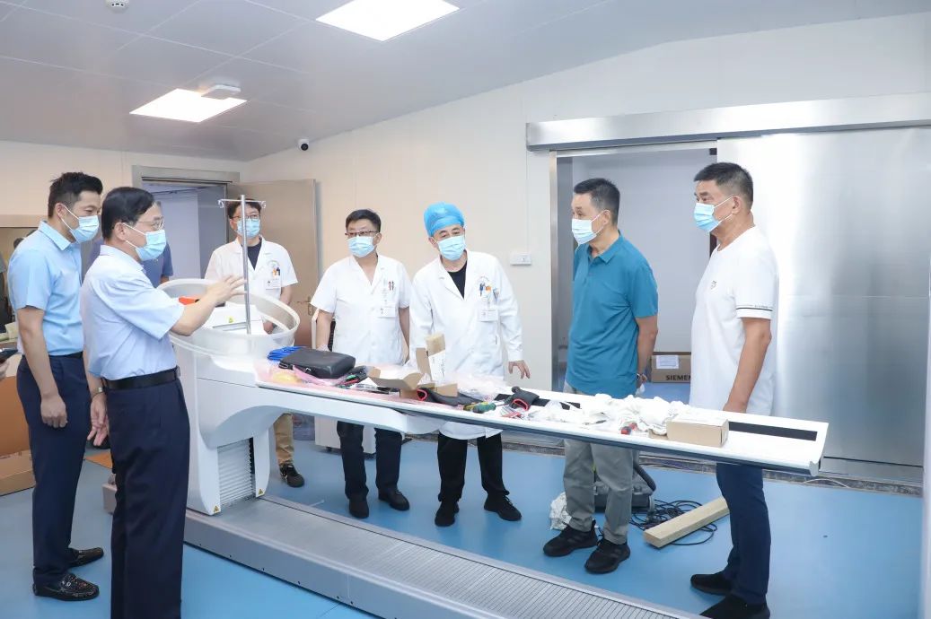 在放療科,劉永好董事長一行關切地詢問病人收治、學科人才、設備配置等情況,并參觀PET-CT安裝施工現場。在高壓氧科,聽取工作人員關于氧艙運行、內部設置和操作技術的介紹,就治療時長、病人類型、操作流程等進行交流。在神經內一科,黃樹其主任詳細介紹了團隊人員構成、患者來源結構、特色專病門診、智慧病區建設等情況,并現場演示智慧醫療和遠程探視系統。