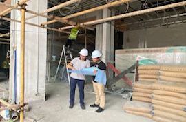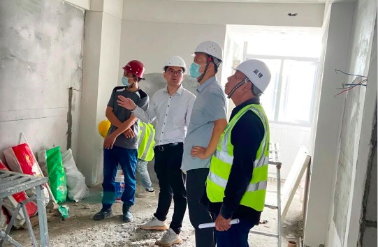 深圳藍生腦科醫院的醫師們頭戴安全帽、手拿施工圖,在建設工地上度過了一個特殊的節日。