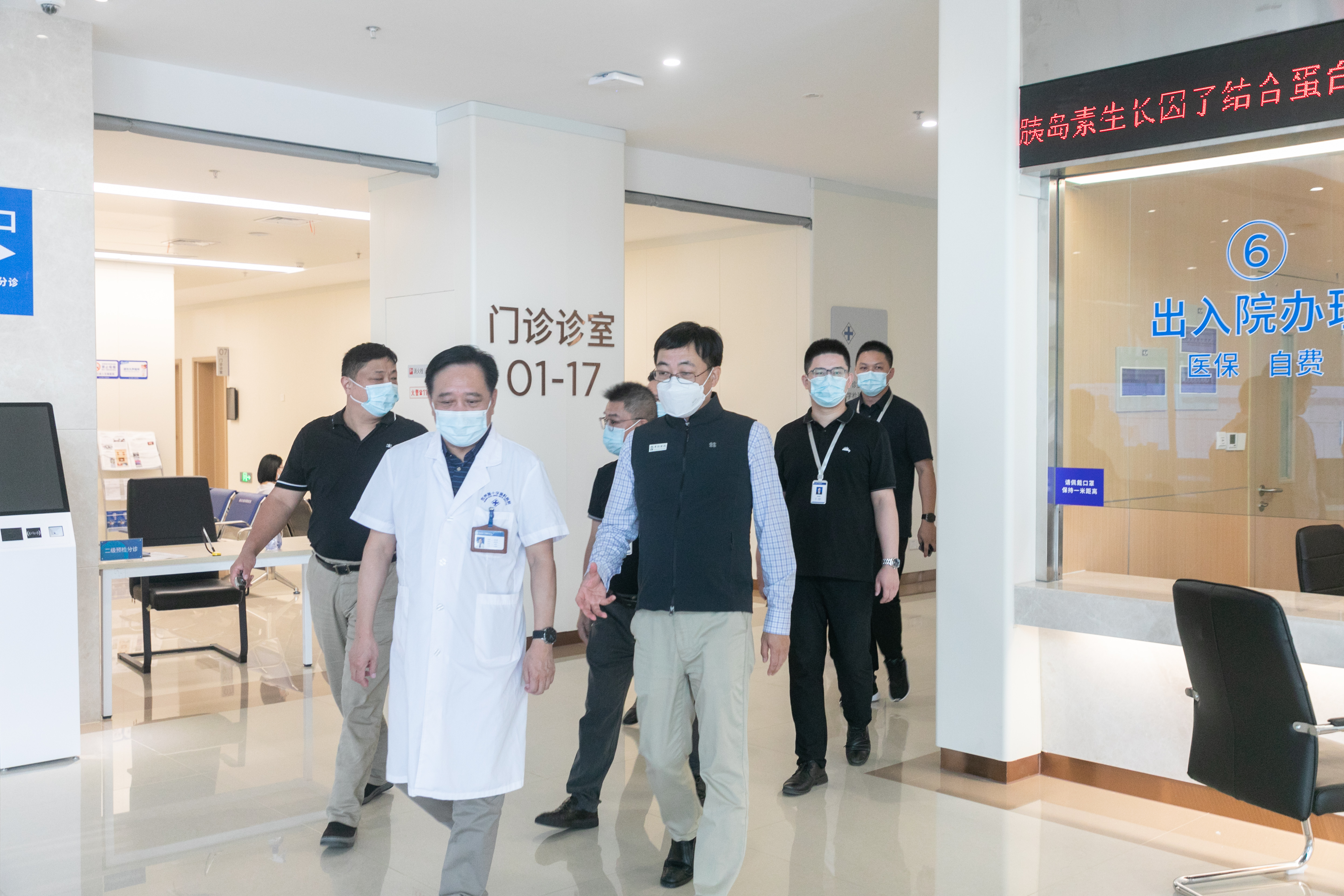 首先,王航副董事長來到醫院門診大廳,對門診布局和診療運行情況進行了解,對醫院強化就診服務、推動院級專家合作表示贊許。