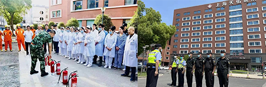醫院還先后與上海市消防總隊普陀支隊桃浦特勤中隊、武警上??傟牂C動第二支隊機動二大隊、武警上??傟爤糖诘谌ш牰箨?、桃浦派出所等多家單位合作共建,通過聯合巡防、開展消防培訓、消防演練等,建立了友好的警民共建關系,共同守護醫院和周邊社區居民安全。