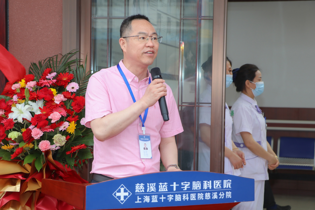 5月27日上午,慈溪藍十字腦科醫院在中醫科門前舉行二期開科暨中醫科揭牌儀式。醫院林??偨浝碇鞒纸遗苾x式。
