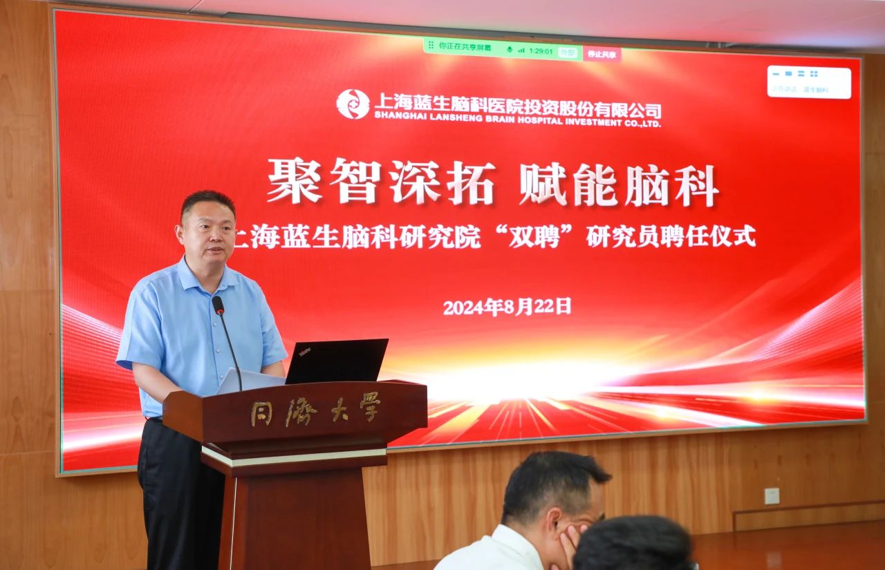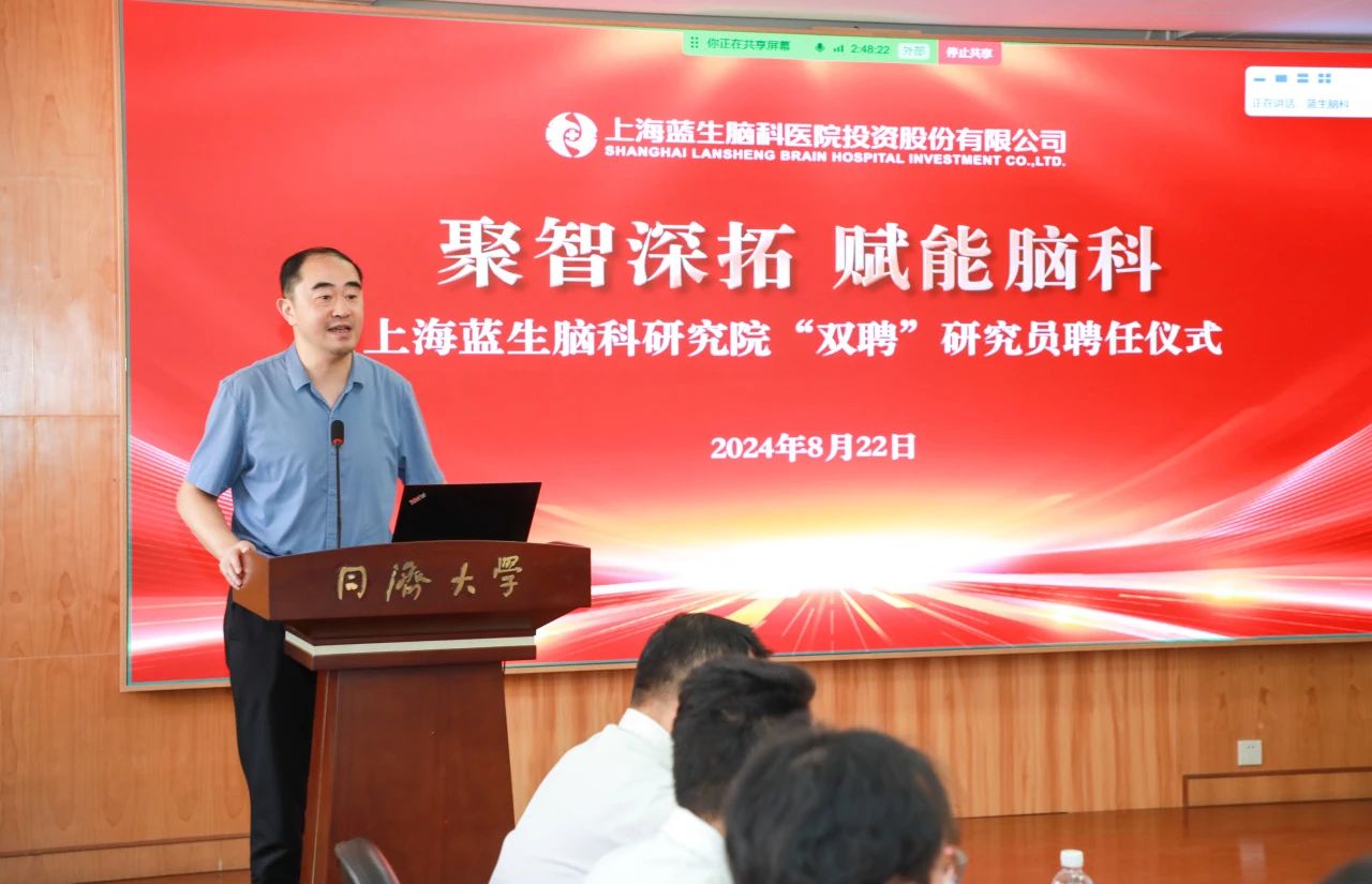 8月22日,公司在同濟大學附屬天佑醫院舉行“雙聘”研究員聘任儀式,標志著公司實質性轉向“臨床+科研”雙輪驅動發展模式。公司旗下醫院“雙聘”研究員、科研工作分管領導和部門負責人通過線上線下結合的形式參加。藍生腦科研究院執行院長殷作明博士主持。