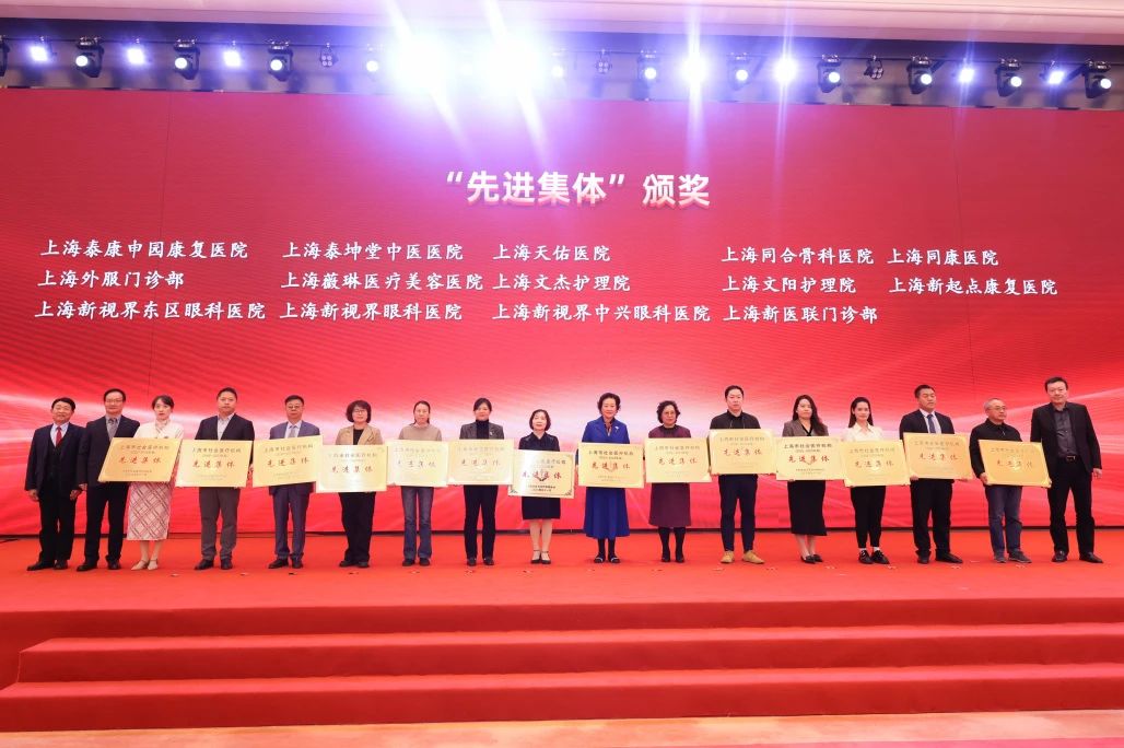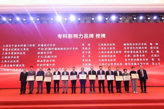 上海藍生萬眾醫院院辦趙玲卉主任(右五)代表醫院上臺領獎