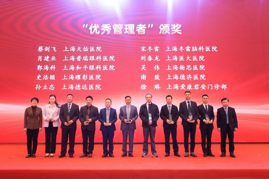 上海天佑醫院蔡劍飛院長(左五)代表醫院上臺領獎