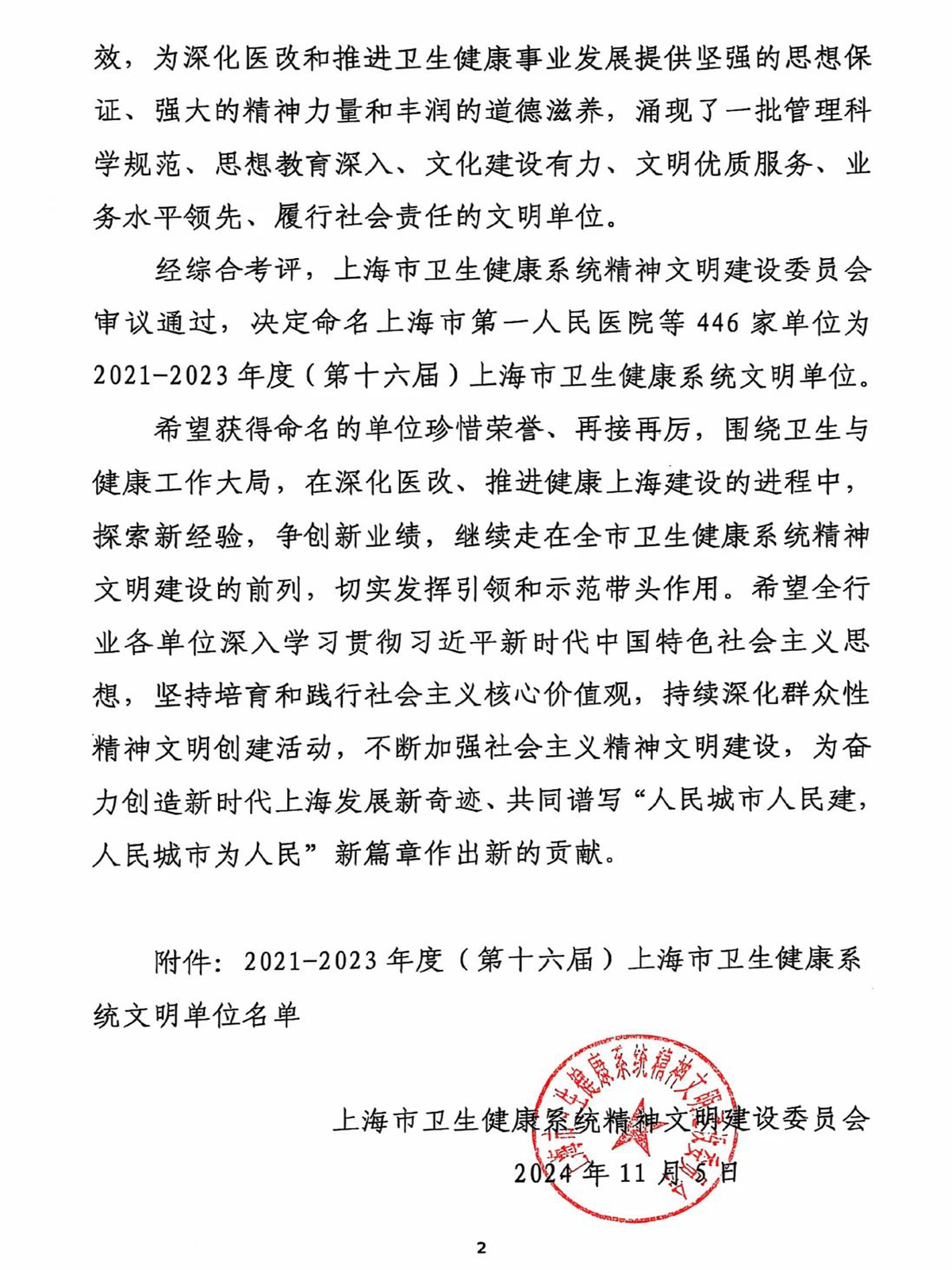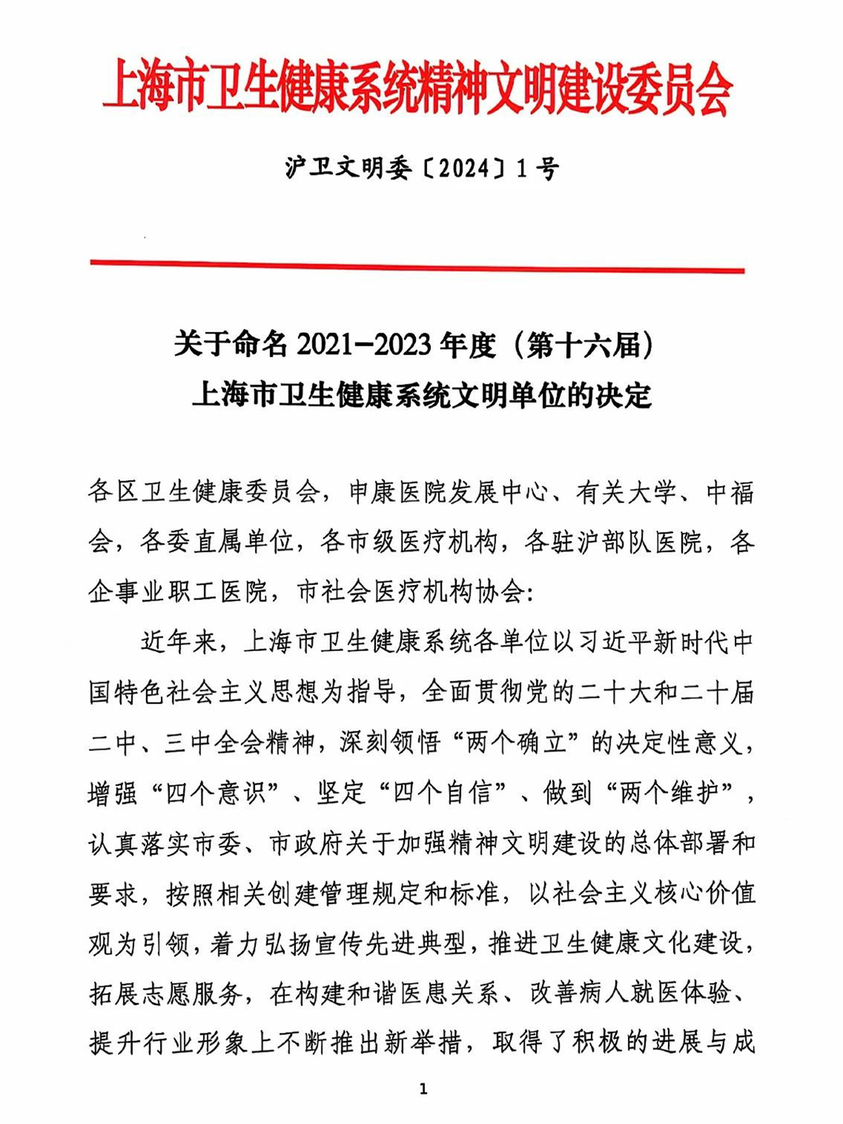 近日,上海市衛生健康系統精神文明建設委員會辦公室公布了“2021-2023年度(第十六屆)上海市衛生健康系統文明單位”名單,上海藍十字腦科醫院再次成功入選。這是醫院自2019年以來,連續三屆獲得該殊榮。此前,醫院已連續四屆獲得閔行區文明單位。