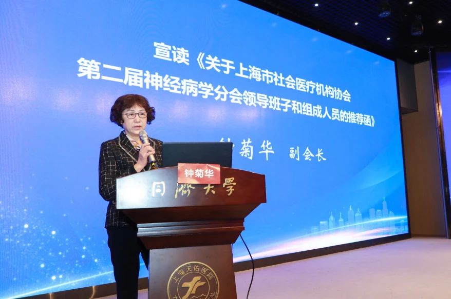 上海市社會醫療機構協會鐘菊華副會長宣讀《關于上海市社會醫療機構協會第二屆神經病學分會領導班子和組成人員的推薦函》。隨后,會議進行了現場選舉,并宣布了選舉結果。