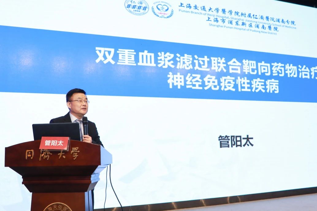 神經病學分會主任委員、上海交通大學醫學院附屬仁濟醫院神經內科主任管陽太作《雙重血漿濾過聯合靶向藥物治療神經免疫性疾病》專題講座,介紹了血漿置換的基本原理、臨床應用及相關經驗等。