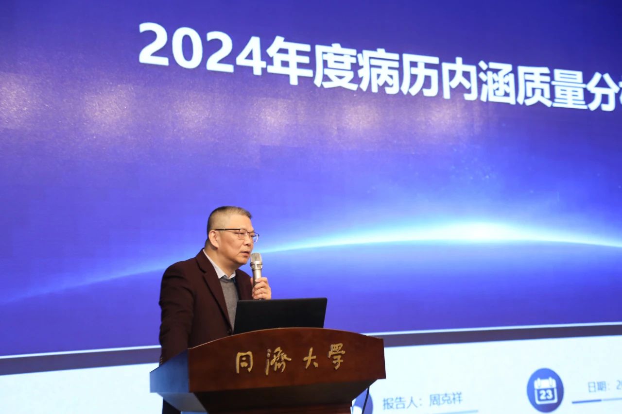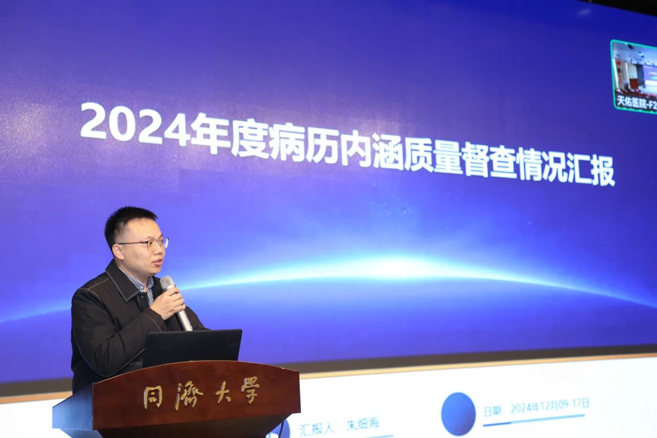 上海藍十字腦科醫院醫務科科長朱細海作2024年度病歷內涵質量督查情況匯報。“專家組圍繞住院病歷內涵質量的5大關鍵(即關鍵環節記錄質量、關鍵變化記錄質量、關鍵行為記錄質量、關鍵結果記錄質量、醫患溝通記錄質量)、23塊核心內容對各家醫院病歷書寫情況進行了督查。”他從病歷內涵質量督查總體情況、督查亮點內容、督查共性問題、病歷規范書寫重要性及建議等方面進行了詳細介紹。