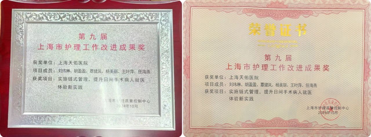 近日,在上海市護理質控中心主辦的“提高護理新質生產力,彰顯護理專業價值”全國會議上對第九屆 “上海市護理工作改進成果獎”獲獎單位進行了頒獎。上海天佑醫院《實施鏈式管理,提升日間手術病人就醫體驗新實踐》項目獲得本屆“上海市護理工作改進成果獎”。