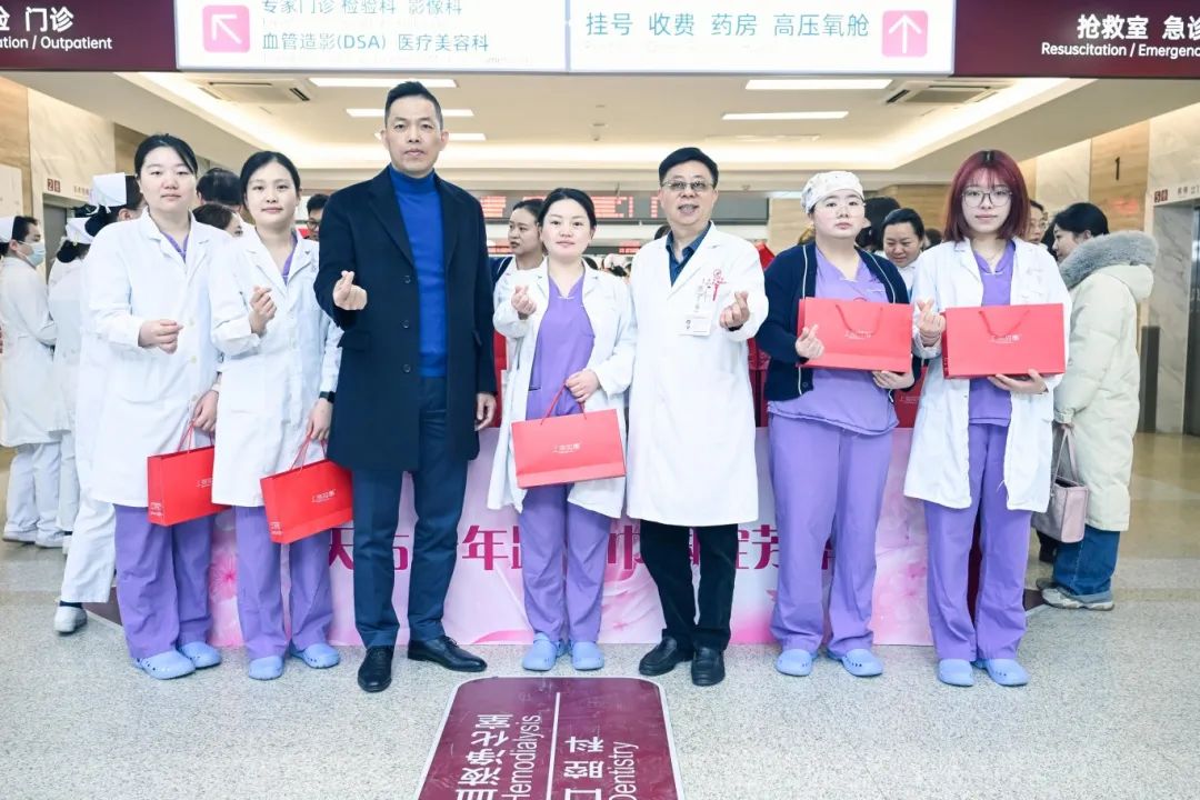 7日,上海天佑醫院領導一早便來到門診大廳,為女員工送上精心準備的節日禮物和祝福。醫院也收到了多位在院工作超過十年的女員工送來的祝福。