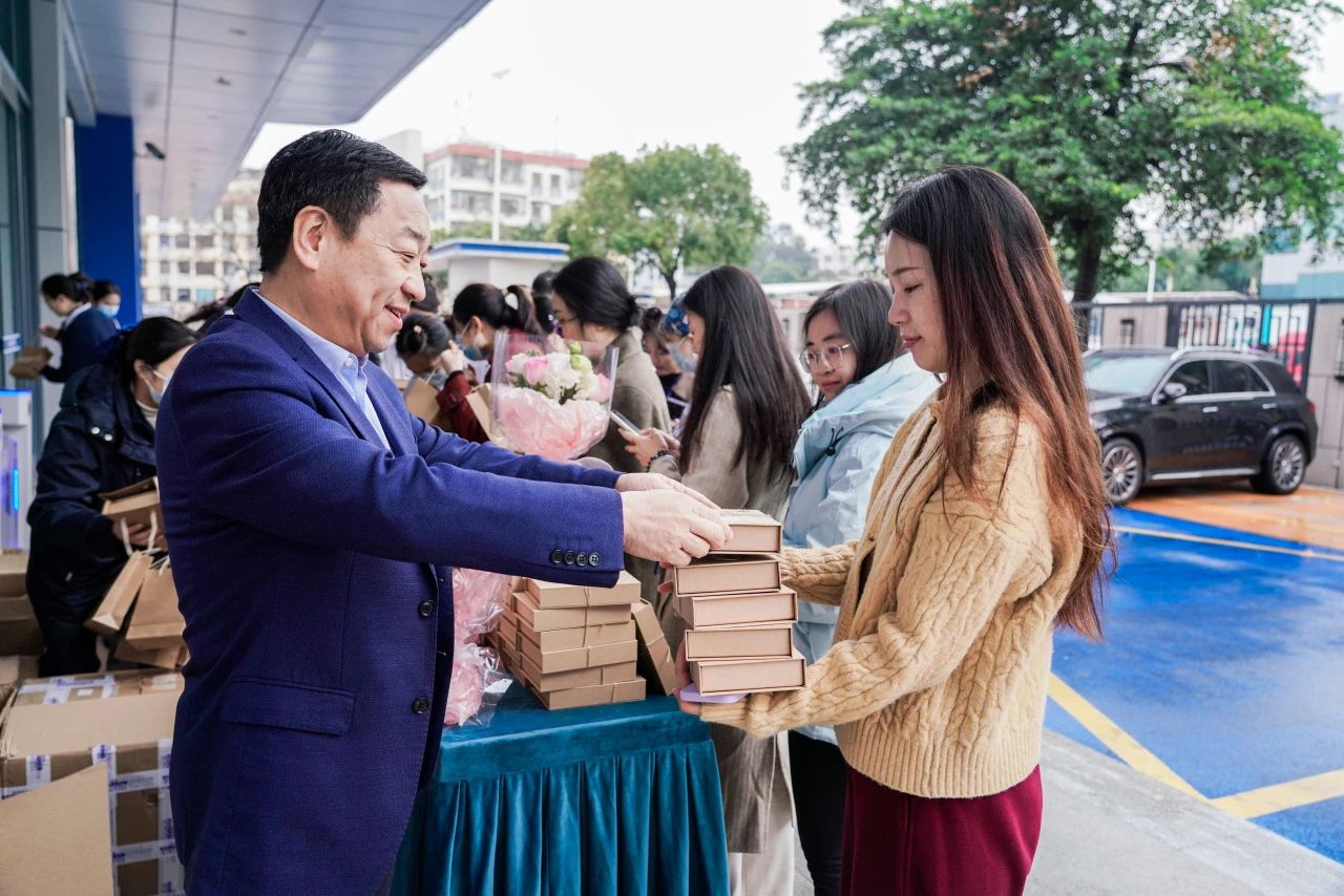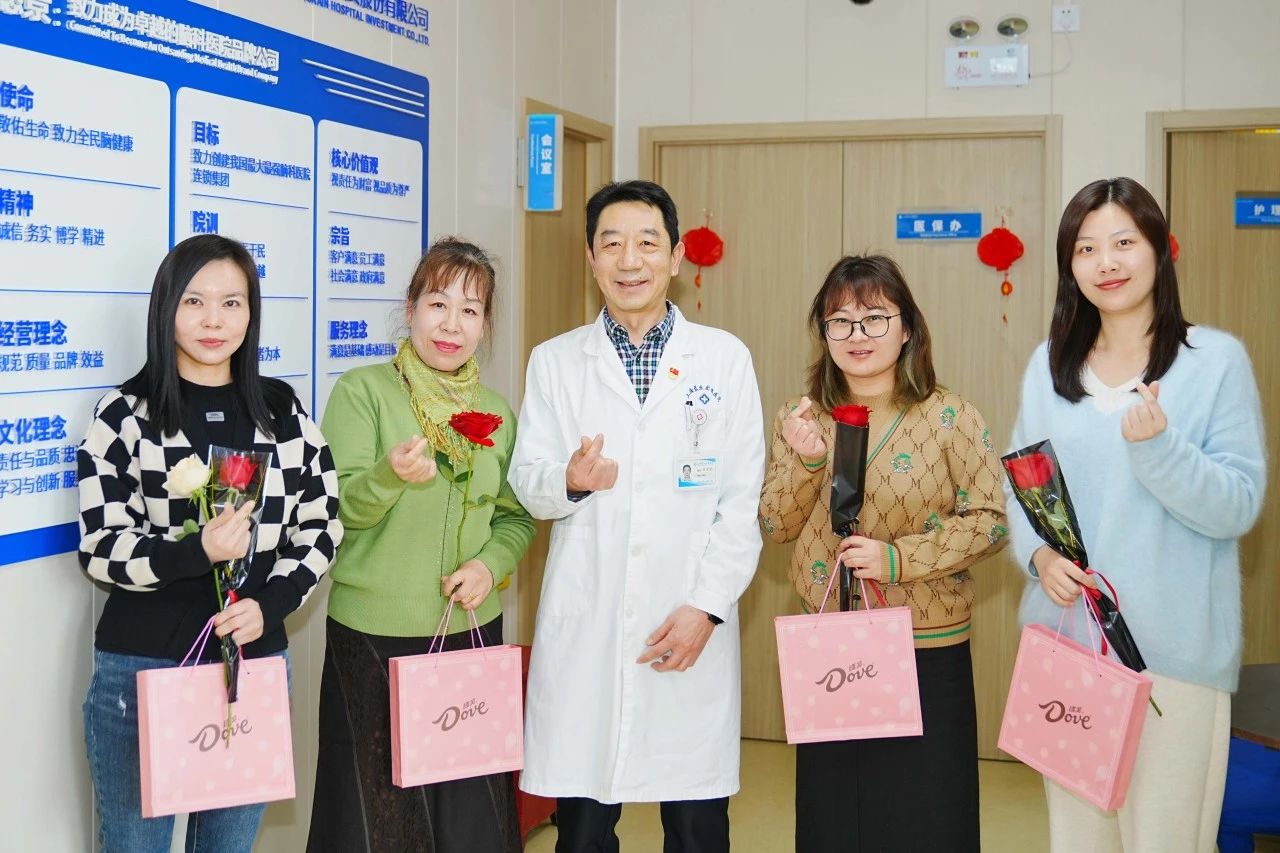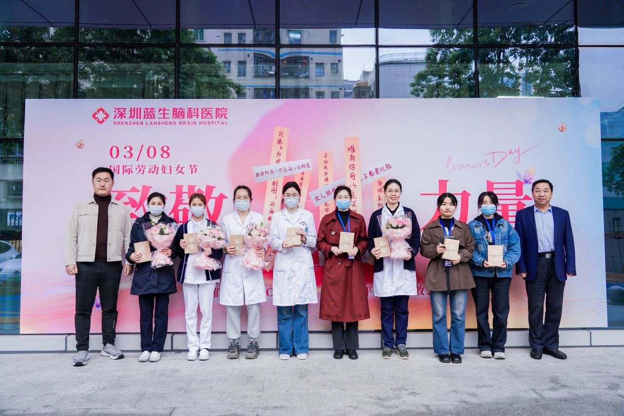 7日,深圳藍生腦科醫院領導在住院大樓前,為340余名女員工送上節日禮品和鮮花,并送上溫馨的節日祝福與親切問候。