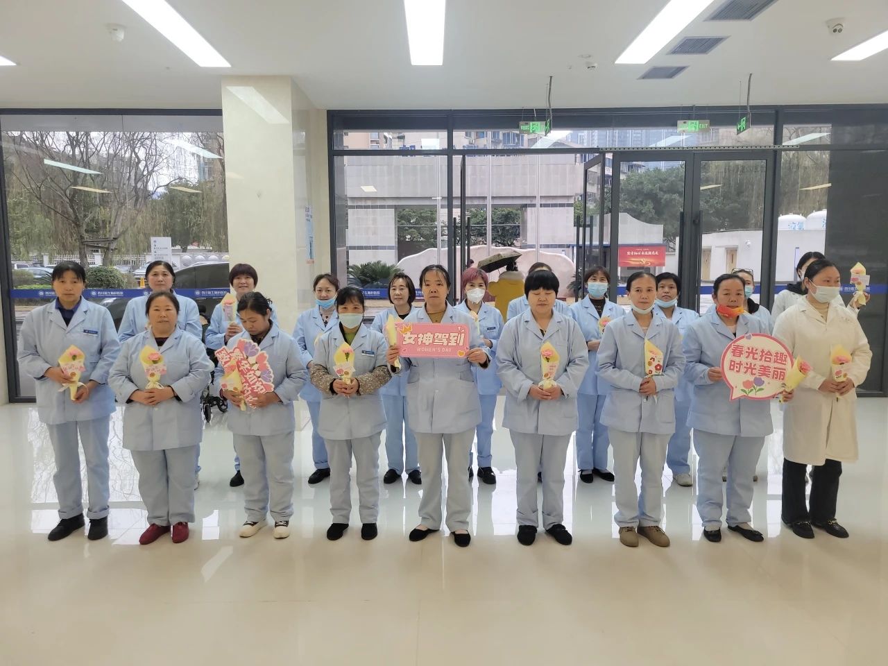 6日,蘇州藍十字腦科醫院領導一早便等候在門診大廳禮物區,為女員工送上精心準備的節日禮物和鮮花。醫院婦聯還開展了“仁心映芳華 巾幗顯擔當”愈療活動。