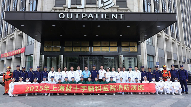 上海藍十字腦科醫院聯合七寶消防救援站開展消防實戰演練